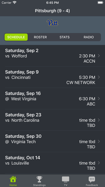핏트버그 대학교 축구는 AKW Ventures LLC가 개발한 iPhone 앱으로, 라이프스타일 카테고리에서 무료로 제공됩니다. 이 앱은 스포츠에 중점을 둔 피트 축구 경기의 대결을 제공하며, 라이브 라디오 중계 링크, 최신 스코어, 일정, 팀 로스터, TV 채널 및 상세한 통계를 제공합니다.